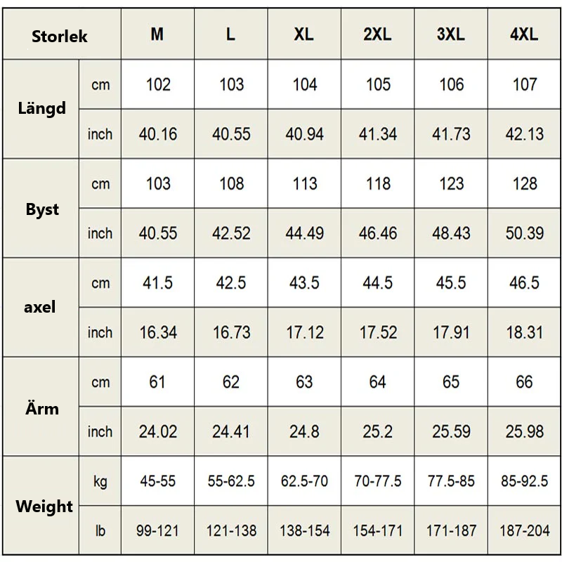 Storlek: M - 4XL