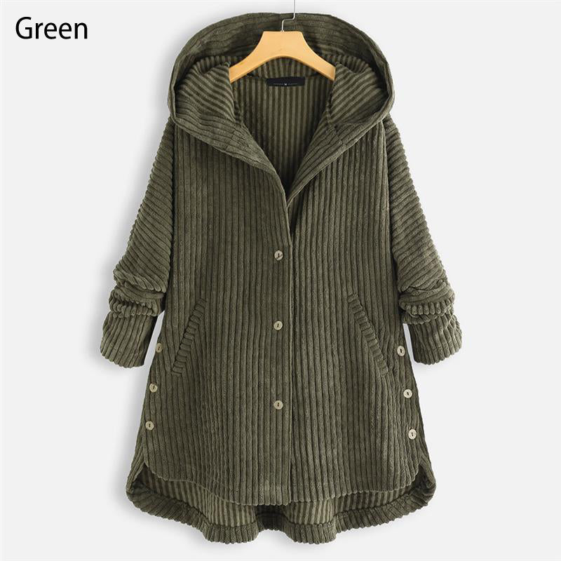Avslappnad Enfärgad Tjock Kappa med Huva och Knappstängning