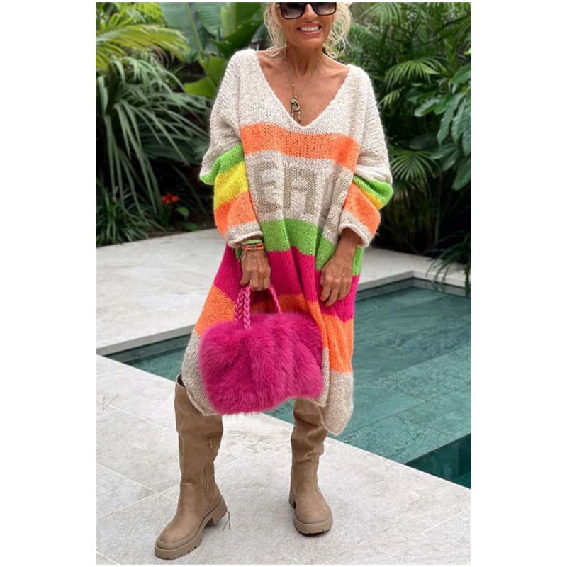 Nu kan du njuta av 50% rabattđ„Color Block V-Neck Letter Print Sweater Dress