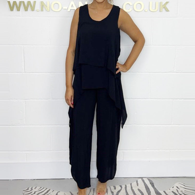 KOMFORTABEL OCH CASUAL: Njut av komforten med den lösa toppen och avslappnade niopunktsbyxorna.