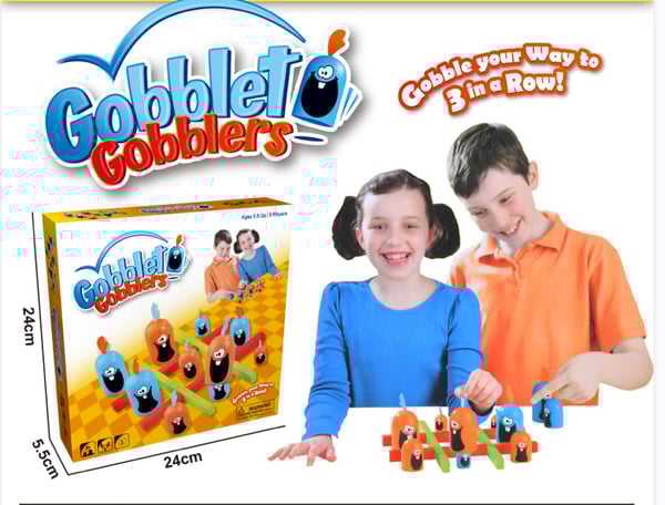 - Som tick-tac-toe, rada upp 3 av dina Gobblers i rad för att vinna!