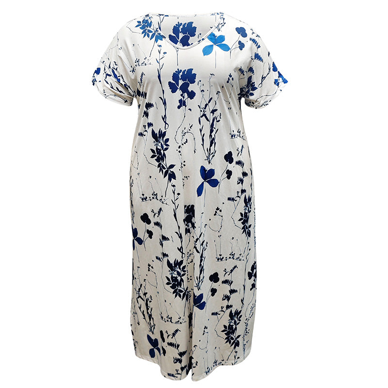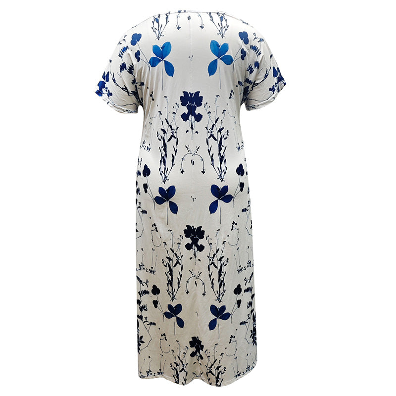 Avslappnat blommigt tryck för kvinnor med korta ärmar