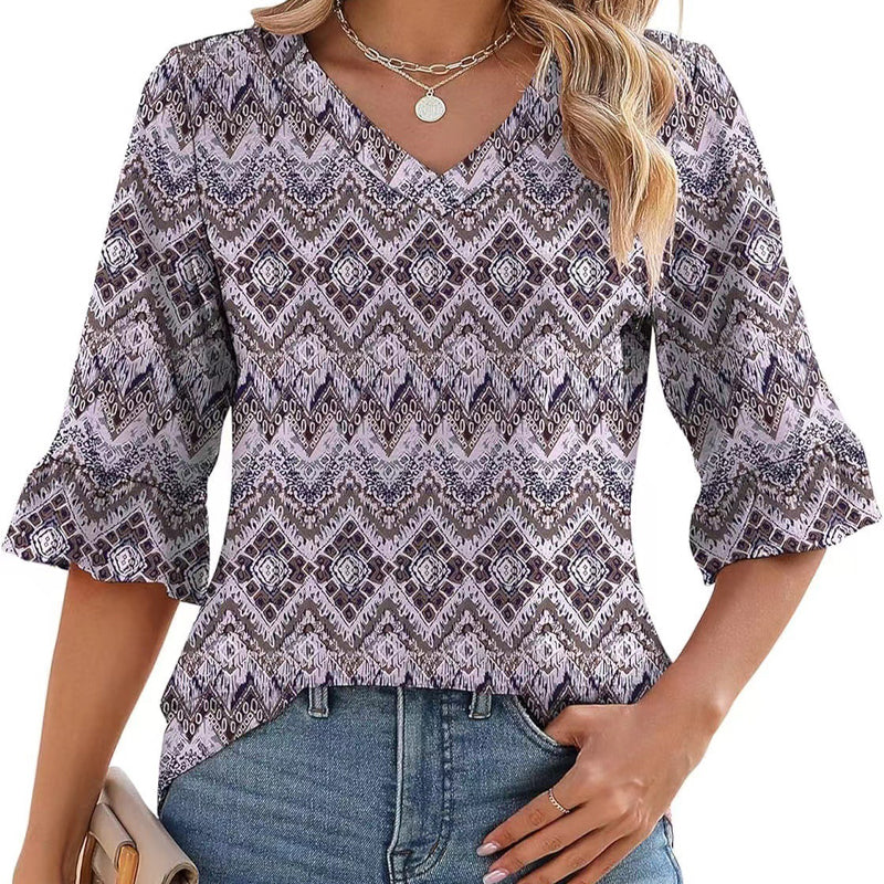 ELEGANT RUFFLE SLEEVES: Har graciösa och flytande mittlängds ruffle sleeves som ger en mjuk, feminin känsla till din outfit och höjer din övergripande look.