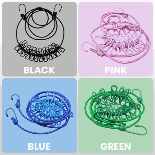 Denna bÀrbara klÀdhÀngare torkar enkelt strumpor, underklÀder, toppar, baddrÀkter, byxor, behÄ, handduk, kalsonger, halsduk och andra klÀder. Perfekt för resor, camping, utomhus- och inomhusbruk.