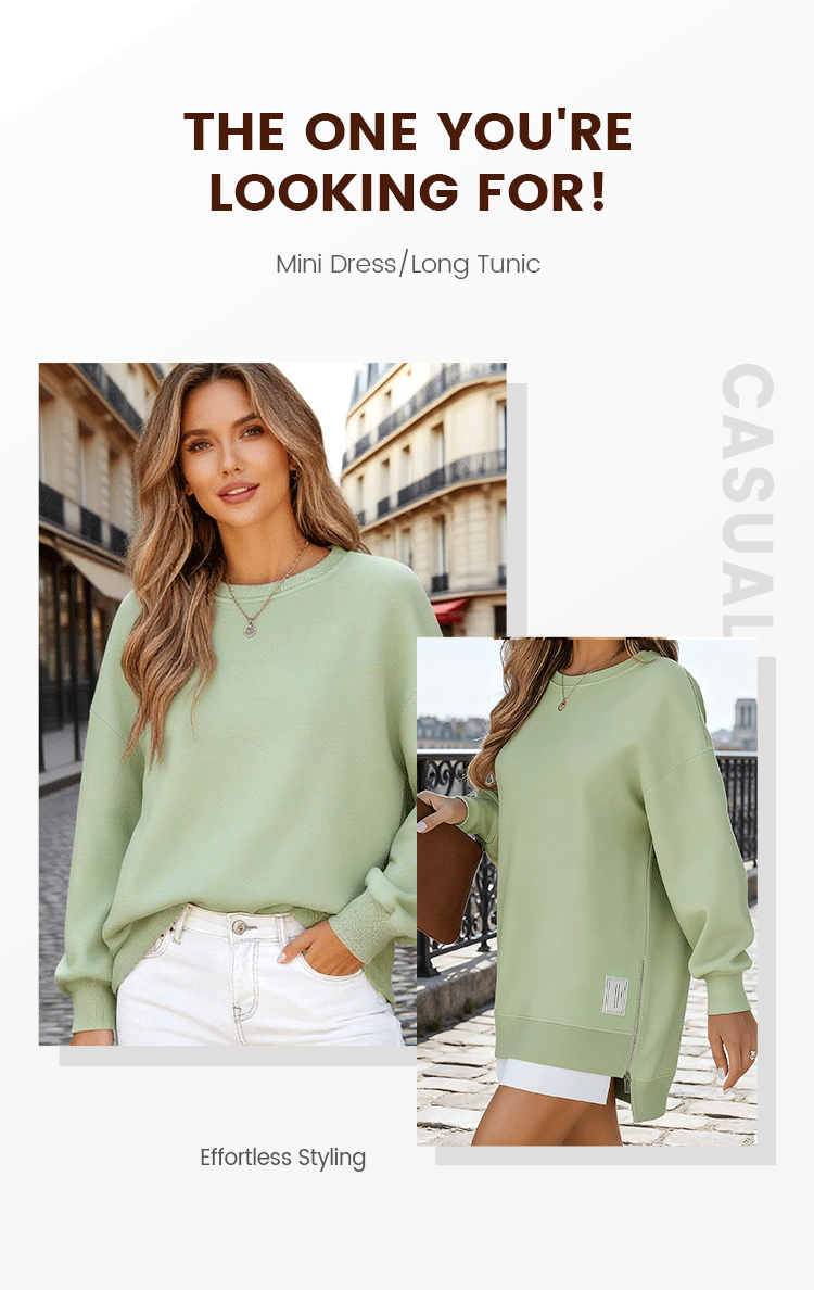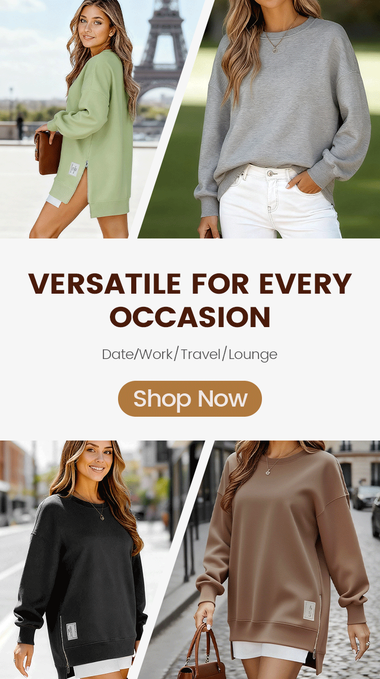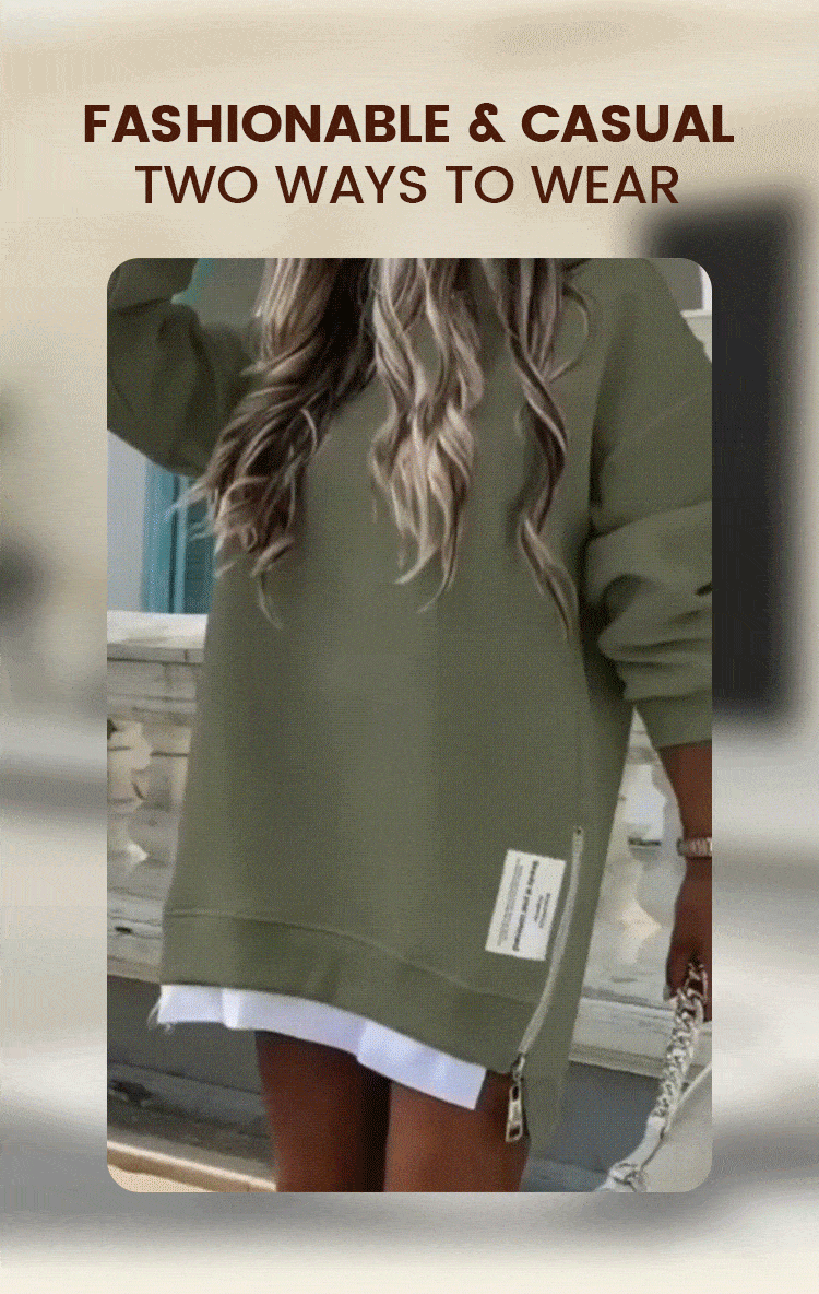 Långärmad tröja med dragkedja och slits, avslappnad sweatshirt