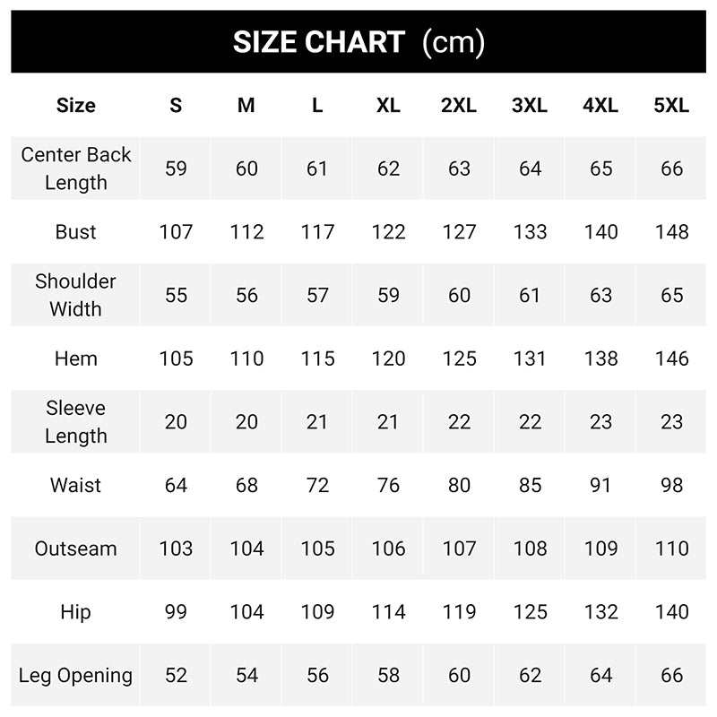 Storlekar: S, M, L, XL, 2XL, 3XL, 4XL, 5XL