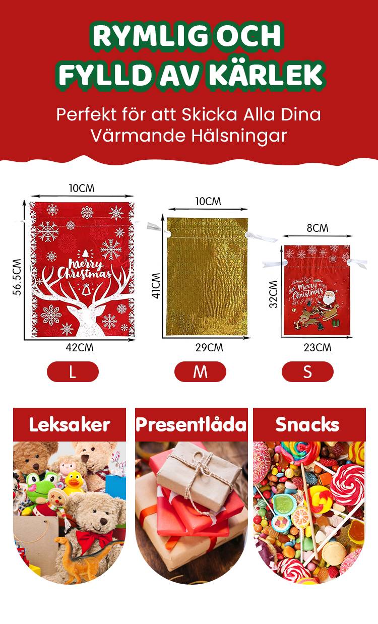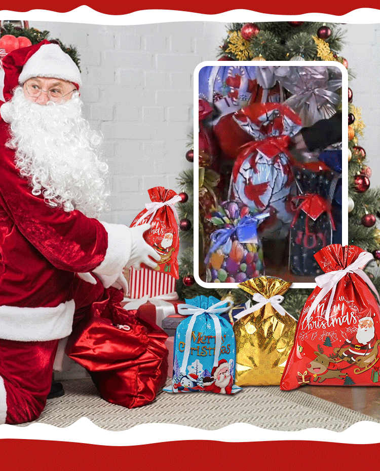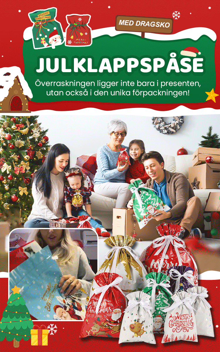 🔥Julspecialerbjudande 50 % RABATT🎅 Världens finaste julklappspåsar med dragsko🎁
