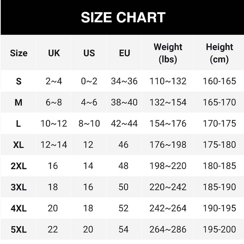 Storlek: S, M, L, XL, 2XL, 3XL, 4XL, 5XL